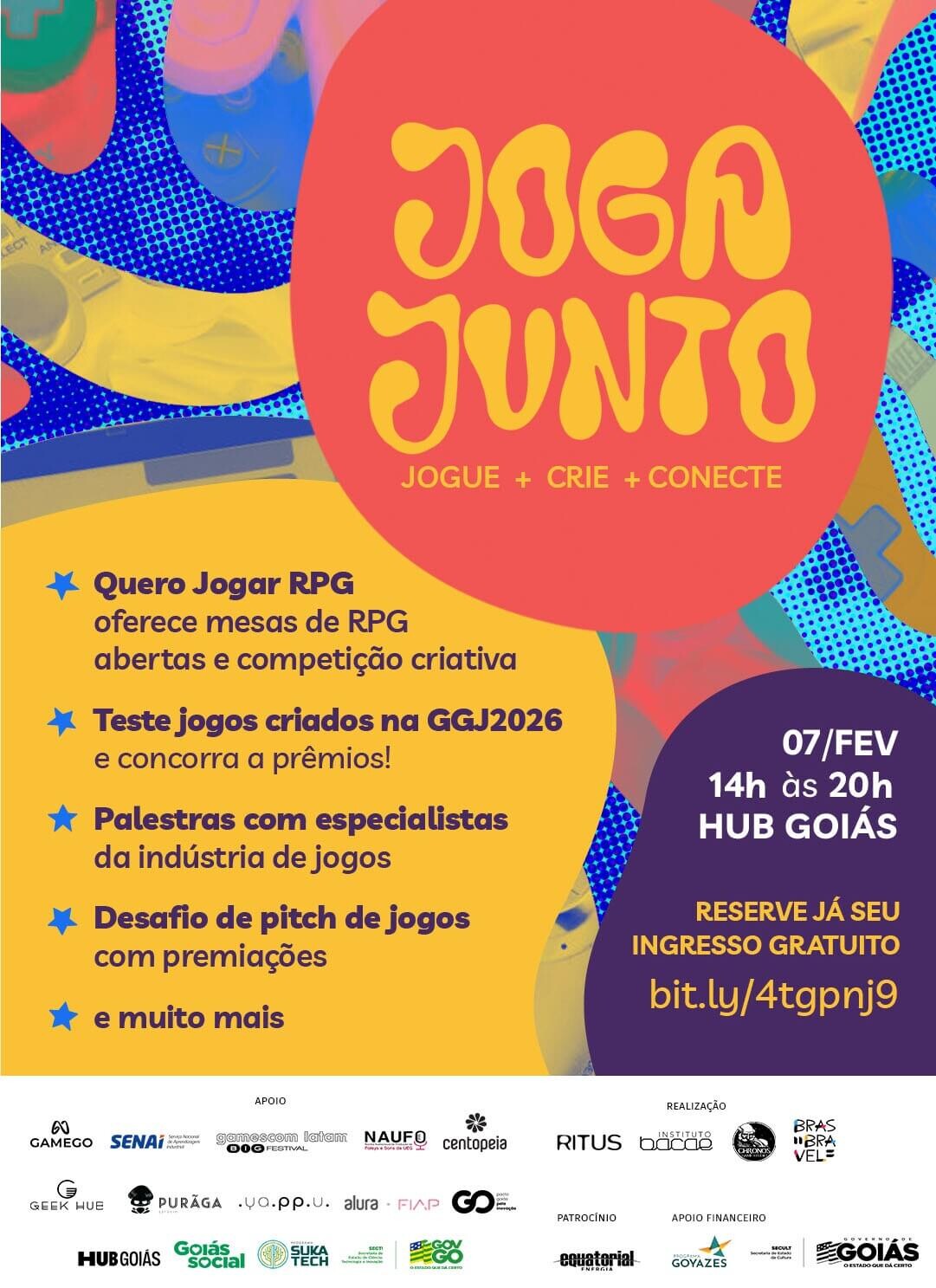 Joga Junto Evento https://www.sympla.com.br/evento/joga-junto/3287609 Local: HUB Goiás Data do Evento : 07 de Fevereiro 2026 - 14h às 20h E-mail : contato@michellesantos.me TweetWhatsApp Listar Todas Voltar