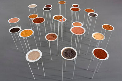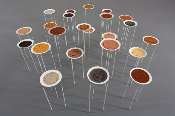 A exposição reúne obras produzidas entre 2021 e 2025 em diferentes linguagens, como desenho, fotografia, pintura, objetos, vídeo e instalação. Em todas elas, a terra aparece como ponto de partida: solo, pigmento, paisagem e memória.