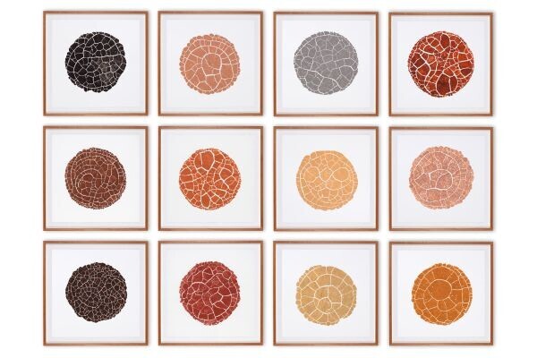 Parte significativa das obras nasce do contato direto com a materialidade da terra. O artista coleta diferentes amostras de solo, peneira, separa e prepara pigmentos a partir dessas matérias. Cada porção traz consigo tonalidades específicas que carregam indícios da composição mineral e orgânica do lugar de onde vieram. Ao transformar terra em pigmento, Arcanjo transporta fragmentos do território para o campo da linguagem. O pó que por anos permaneceu sedimentado é suspenso, misturado à água e depositado sobre superfícies como papel ou porcelana. Ali, inicia-se um processo que envolve espera, observação e abertura ao acaso. Alguns pigmentos se fixam com intensidade por fricção; outros se desfazem com facilidade. O tempo torna-se colaborador do trabalho, e a imagem emerge como resultado de interações entre forças visíveis e invisíveis.